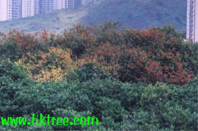 遠看近海邊有黃紅色的葉片便有可能是海漆群